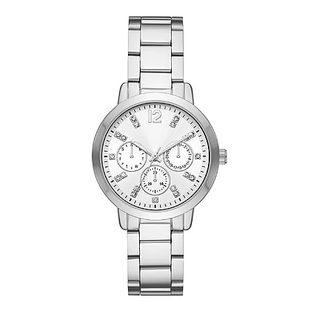 Time & Tru Women's Watch, Silver Tone Round Case and 3 Link Bracelet, Silver Sunray Dial with 3 Sub dials (FMDOTT109)