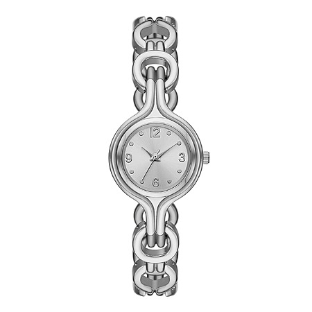Time & Tru Women's Wristwatch: Silver Tone Round Case and Dial, Silver Interlocking Bracelet (FMDOTT099)