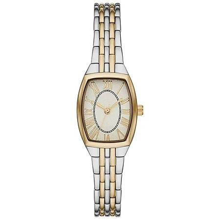 Time & Tru Women's Wristwatch: Two Tone Silver and Gold Barrel Case Bracelet Watch (FMDOTT077)