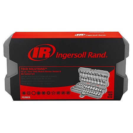 Ingersoll Rand® 52 piece master bit socket set combines the most commonly used technician tools in a comprehensive all-in-one collection. The set includes 52 bit sockets to cover most automotive and industrial applications. All Ingersoll Rand® master mechanics tool sets a durable, high-quality storage case that breaks down with removable hinges for easy storage in toolbox drawers and reassembles in seconds for transporting tools to the jobsite. Socket bodies are constructed of Chrome Vanadium Steel and mated to S-2in.dustrial-grade steel bits. For added durability and corrosion resistance, bits are treated with a Zinc Phosphate finish. Ingersoll Rand® signature vertical knurling offers better grip and easier handling with greasy hands. Torx is a registered trademark of Acument Intellectual Properties LLC