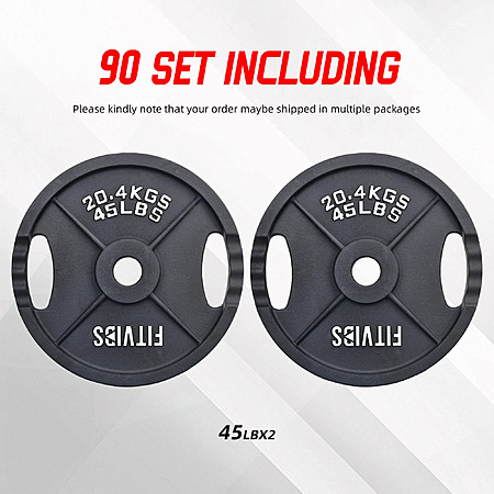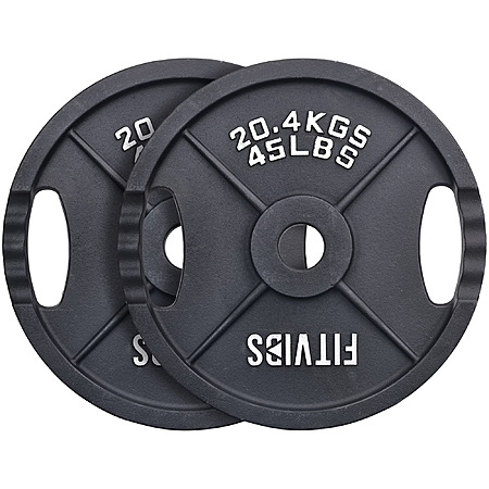 Model: Signature Fitness 2-Grip Olympic Cast Iron Weight Plates, 2-Inch Hole, 2.5LB–45LB, Black with Silver Lettering