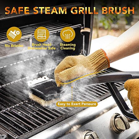 Model: SIMPLETASTE Grill Brush and Scraper Bristle-Free for Outdoor Grill, Steam Cleaning Brush, Transformable Brush and Scraper Cleaner, Safe for Stainless Steel Grates Cast Iron, BBQ Accessories Tool