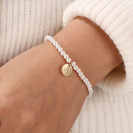 Ursteel Glass Pearl Initial Bracelet (Gold-Plated or Silver-Plated) $2.99 + Free Shipping w/ Prime or on $35+