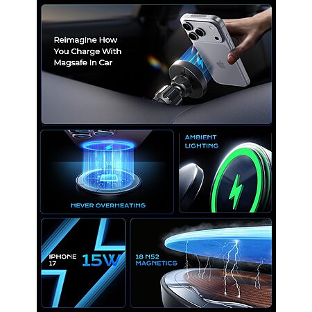 LISEN Qi2 15W MagSafe Vent & Dashboard Car Mount Charger w/ 3.3' 60W USB-C Cable $14.99 + Free Shipping w/ Prime or on $35+