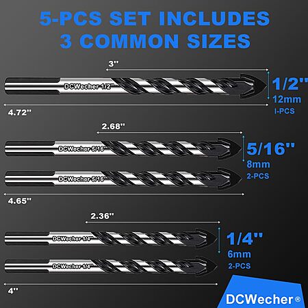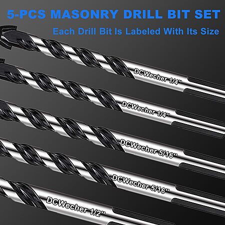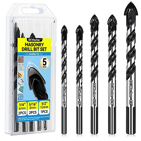 Masonry Concrete Drill Bit Set, Carbide Tip (1/4" 5/16" 1/2"), 5-Pcs $3