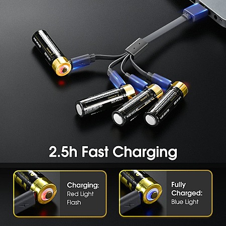 8-Count 1.5V 2800mWh HW Rechargeable Lithium AA Batteries w/ Charging Cable $10.79 + Free Shipping w/ Prime or $35+ orders