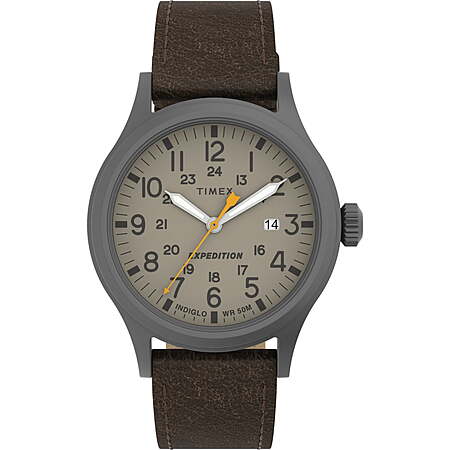 Timex Men's Expedition Scout 40mm Watch – Gunmetal Case Khaki Dial with Dark Brown Leather Strap $37