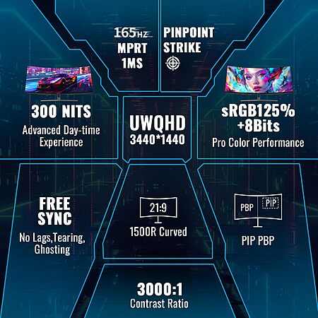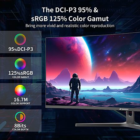 34" SANSUI 3440x1440 UWQHD 165Hz Curved Ultrawide VA Gaming Monitor