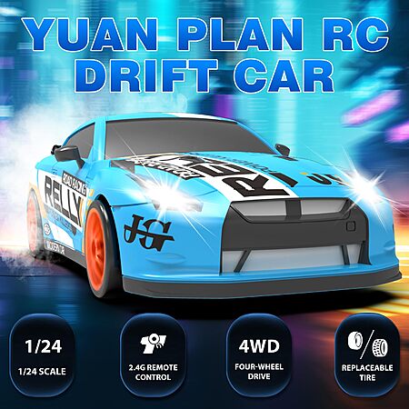 RC Drift Car 2.4GHz 1:24 Scale 4WD Remote Control Car - $11.75