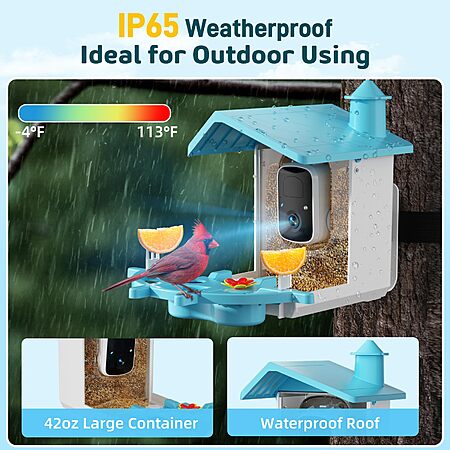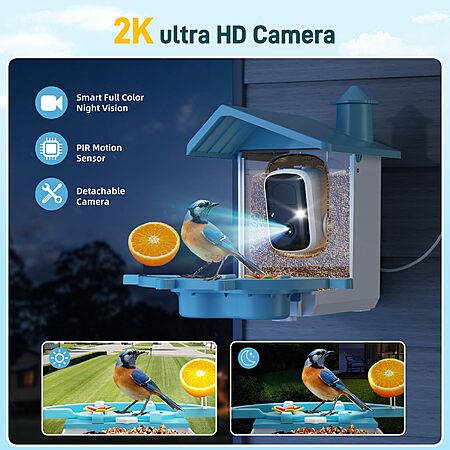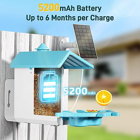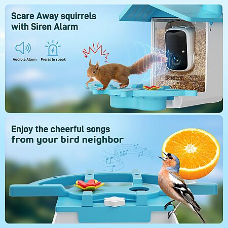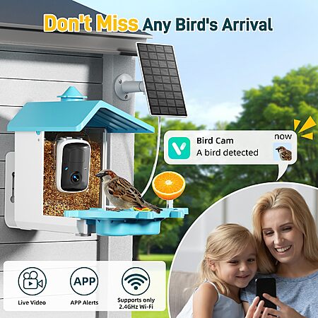 Smart Bird Feeder with Camera, Solar Powered WiFi WildBird Watching Camera (Blue) - $29.99