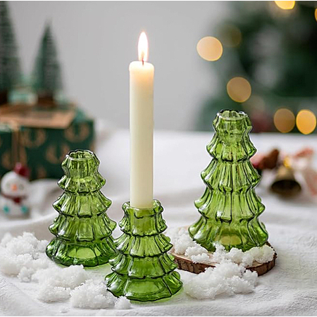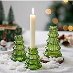 Christmas Tree Candle Holder: 3 Pcs Green Glass Candlestick Holders - $9.98