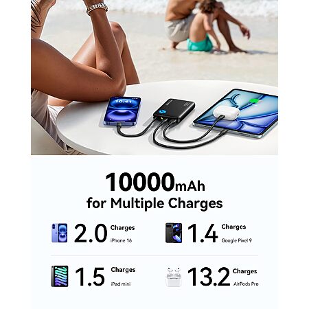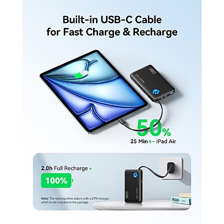 INIU 45W Power Bank, Fast Charging Portable Charger with Built-in USB C Cable, 10000mAh $13.76