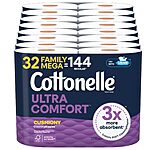 32-Pack Cottonelle Toilet Paper Family Mega Rolls (Ultra Comfort or Ultra Clean) for $34.79 - 25% when you 'clip' the coupon on the product page (or check and activate