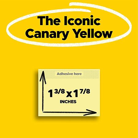 Model: Post-it Notes, 1/3/8 x 1 7/8 in, 24 Sticky Notes Pads, 100 Sheets per Pad, Canary Yellow, The Original Post-it Note, School Supplies and Office Products