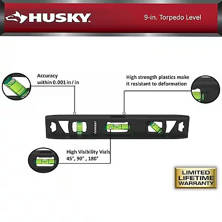 Husky 2pk 9in. Torpedo and 24in. Aluminum Level, $13.88, FS, Home Depot