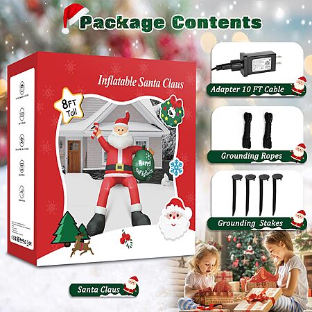 $31*:8FT Inflatable Sitting Santa Claus Christmas Outdoor Decorations