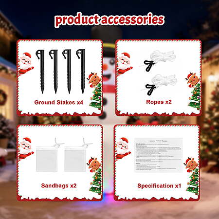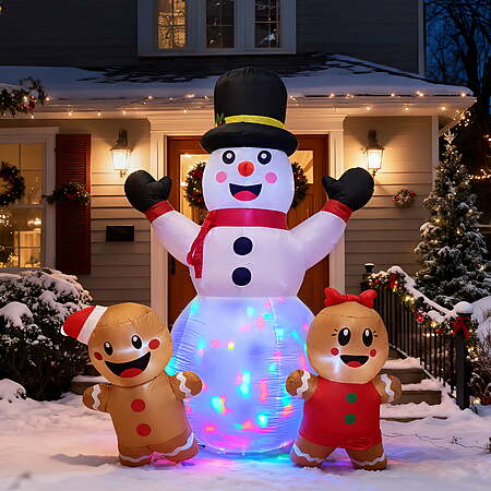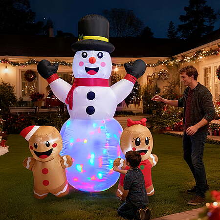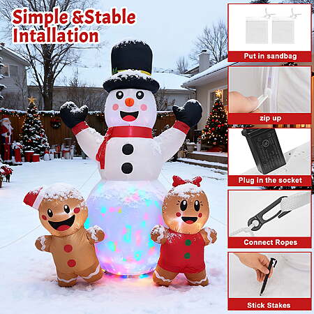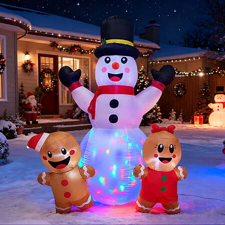 | Product Description: | 7FT Christmas Inflatable Snowman & Gingerbread Men Set – Outdoor LED Decor for Holiday Cheer! Bring festive magic to your yard with this adorable 7FT tall Christmas inflatable set! Featuring a jolly snowman holding hands with two cheerful gingerbread men, this eye-catching trio is the perfect addition to your holiday decorations. Bright built-in RGB LEDs illuminate the snowman and gingerbread friends, creating a warm and whimsical glow for your yard, garden, porch, or indoor holiday display. ✅ 7FT Tall Inflatable Set – A grand holiday centerpiece that stands out in any space. ✅ Adorable Trio Design – A festive snowman in the middle, holding hands with two smiling gingerbread men. ✅ Built-in RGB LED Lights – Energy-efficient, multicolor lighting for a dazzling nighttime display. ✅ Durable & Weather-Resistant – Made from high-quality polyester fabric, designed for outdoor use (wind-resistant with secure stakes). ✅ Easy Setup & Storage – Includes a built-in fan for quick inflation and deflates compactly for storage. ✅ Perfect for Holiday Decor – Ideal for lawns, gardens, rooftops, patios, or indoor spaces like malls, schools, and living rooms. ?? Spread Christmas Joy! Whether you're decorating your home, hosting a holiday party, or adding cheer to a commercial space, this 7FT inflatable snowman and gingerbread set will delight kids and adults alike. |