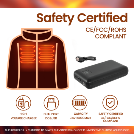 | Product Description: | GVDV Men's Heated Hunting Jacket is a versatile and innovative piece of outerwear designed to keep you warm and comfortable in cold and challenging environments. Providing an effective solution for staying warm and cozy when the temperature drops. Why choice GVDV Male Heated Hunting Jacket? √ Upgrade Battery Life, up to 8 working hours (3.5 hrs on high, 5 hrs on medium, 8 hrs on low heating setting) √ 3 Temperature Levels, maximum temperature up to 149°F, Full temperature can be attained within one minute. √ Upgraded 5 Heat Zones, 5 carbon fiber heating elements generate heat across core body areas (left & right chest, back and left & right walst) √ Upgraded Carbon Fiber Heating Technology, carbon fiber technology, warm your body efficient and safely. √ Heated Hunting Jackets for men with UL/CE certified battery heat quickly in seconds, 16,000mAh/3.7V with higher efficiency and power output up to 7.4V, get a high quality power battery for free, don't need to buy from otherwhere. Save your time and money. √ One-touch Change Temperature, adjust between 3 heating settings (high, medium, low) with just a simple press of the button. Men's Soft Shell Heated Hunting Jacket Specificationsi: ProductName : GVDV Heated Hunting Jacket Softshell Fabric: 94% Polyester + 6% Spandex Liner: 100% Polyester Thermal Fleece Rechargeable Battery Pack: Capacity: 16000mAh Battery Output-7.4V Heating Posltion: 5 Heating Panels (Chest*2,Mid-back*1,Walst*2) Adjust 3 Heating Settings: 3.5-8 hours High Red: 55-65℃(131-149℉), 3.5 hours Medium White: 45-55℃(113-131℉), 5 hours Low Blue: 40-45℃(104-113℉), 8 hours Care Instruction: Machine Washable Water Resistant: Yes Wind Resistant: Yes Package Included: 1 x GVDV Heated Hunting Jacket 1 x 16000mAh Battery Pack 1 x Charging Cable 1 x User Manual Washing Tip: Hand Wash and Machine Wash take off Battery and Charger, Hang or Flat Dry, Do not Dry Clean, Do not Drying. 🔥 5 Heating Zones, 3 Heating Modes: Ultra-Thin Carbon Fiber Heating Elements, GVDV Men's Heated Hunting Jackets are equipped with 5 heating zones, generate heat across core body areas (left & right chest, back and left & right walst), 3 heating settings (High-red, medium-blue, low-white), one key to turn off the lights, simple press to set the temp.Built-in thermal protection setting, once it is overheat, the heated coat for men would stop, until the heat return to the standard temperature. 🔥 QC 3.0 Quick-Heat & Long-lasting Warmth: Male Heated Hunting Jackets for men with UL/CE certified battery heat quickly in seconds, 16,000mAh/3.7V with higher efficiency and power output up to 7.4V with 8 working hours, 8 hours (low 104-113°F), 5 hours (med 113-131°F), 3.5 hours (high 131-149°F), The USB Type-C port can be used to charge smartphones and other mobile devices. 🔥 Upgraded Material&All-Round Wind Protection: The Heated Hunting Jacket made of 94% polyester + 6% spandex softshell fabric, with 100% polyester thermal fleece liner. Comfortable warmth with excellent breathability. Hunting Ski Heated Hunting Jacket for men the shell uses taped which seams durable & wear-resistan, it is fully sealed to prevent water and stain from seeping inwards so that let you easily deal with outdoor rainstorm climate calmly.Detachable storm hood with adjustable drawstring and stand collar. Premium seamless YKK zipper, smooth without snapping, all the well-designs keep out the wind effectively. 🔥 Easy Care & Washing Instructions: GVDV Heated coat the heating elements and overall jacket structure are designed to endure routine hand or machine wash, easy care. Notes:please take out the power bank and put the DC plug in the pocket before winter jacket washing and use a laundry bag to prevent the wire from catching and being pulled off while using a washing machine. 🔥 What You Will Get: Package include 1 * heating jacket for men, 1* 16000mAh battery pack, 1* charging cable , 1*user manual, The GVDV Heated Hunting Jacket are an ideal and warm gift for famil members,friends,employees and yourself, Ideal for winter outdoor sports, hiking, hunting, camping, fishing, skiing, working, travel, snowboarding, mountaineering, and casual daily wear. |