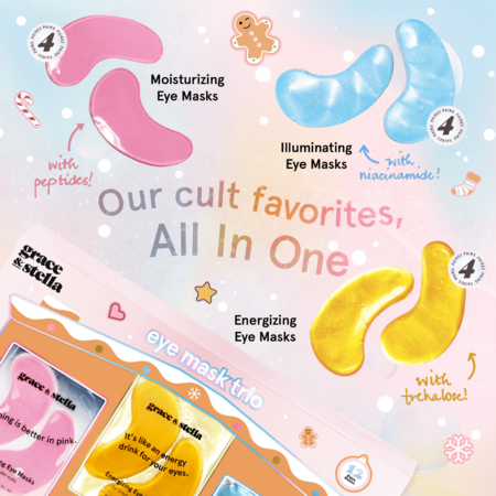 | Product Description: | Our iconic, best-selling eye masks are available in holiday gifting-ready packaging, designed to visibly refresh, brighten, and de-puff tired-looking eyes. Whether it’s after a late night out or an early morning, these game-changers have you covered. Each set includes 12 pairs—4 gold, 4 pink, and 4 blue eye mask pairs—perfect for self-care or gifting. Our iconic, best-selling eye masks are available in holiday gifting-ready packaging, designed to visibly refresh, brighten, and de-puff tired-looking eyes. Whether it’s after a late night out or an early morning, these game-changers have you covered. Each set includes 12 pairs—4 gold, 4 pink, and 4 blue eye mask pairs—perfect for self-care or gifting. Your Under Eye Skincare Routine for Dark Circles - Eyes are the first thing people notice. Feel confident and look your best, refreshed, awake, youthful, and brightened by adding these Gold, Blue, Pink under eyes patches into your daily self-care routine. Soothing formula for refreshed-looking eyes - Reduce puffiness, bags and swelling with these cooling under eye hydrating mask, and enjoy "me-time" while reducing the visibility of fine lines, smoothing undereye wrinkles, and dry under eye skin. Achieve hydrated and tightened under eye skin with these eye masks for dark circles and puffiness. |