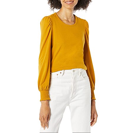 $5.56 Amazon Essentials Women's Long-Sleeve Crewneck Smocked Cuff T-Shirt