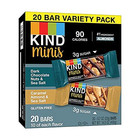 [S&S, AC] $8.05: 20-Pack 0.7-Oz KIND Minis Bars (Dark Chocolate Nuts & Sea Salt/ Caramel Almond & Sea Salt) at Amazon (40.3¢ each)