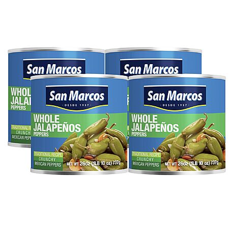 San Marcos Whole Jalapeno Peppers, 26 Ounce (Pack of 4)~$6.32 @ Amazon