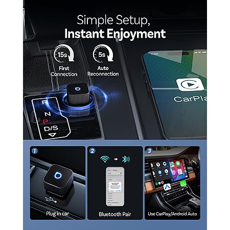Ottocast Mini Cube 3.0 Wireless CarPlay & Android Auto Adapter 2026– Plug & Play, Fast Auto-Reconnect (Black/Silver) $47.44