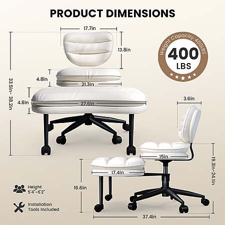 Ergonomic Cross-Legged Swivel Chair, Adjustable Height and PU Leather $45.99