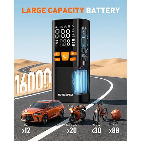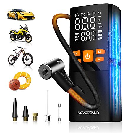Model: NEVERLAND Tire Inflator Portable Air Compressor - Cordless & 12V DC Air Pump for Car Tires, 150 PSI Bike Pump With Digital Pressure Gauge, Auto-Shutoff Tire Pump for Car Bicycle Motorcycle Ball