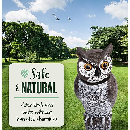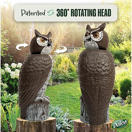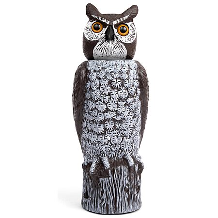 - FEARSOME GARDEN OWL DECOY WITH ROTATING HEAD: The extremely detailed owl statue combined with the 360-degree rotating head and piercing big eyes will strike fear into any bird or pest, and keep your garden or patio pest and bird-free.