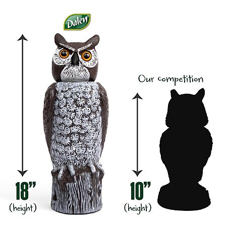 - ULTRA-REALISTIC OWL SCARECROW WILL KEEP BIRDS AWAY: When it comes to amazingly life-like owls to keep birds away, it doesn't get any better than the Dalen lifelike and imposing, 18-inch Natural Enemy Scarecrow owl decoy bird deterrent.