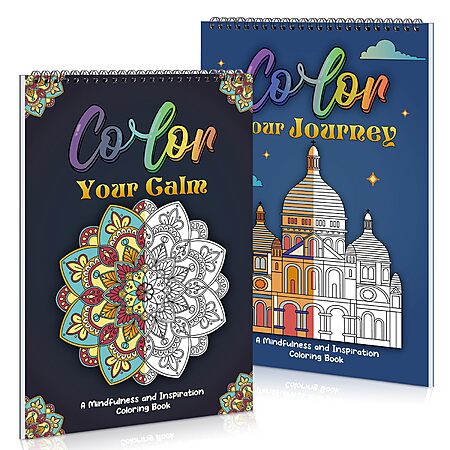 8.3×11.7in Adult Coloring Book for Relaxation, 2 Pack (Mandala & Travel or Women & Flowers) - $4.99