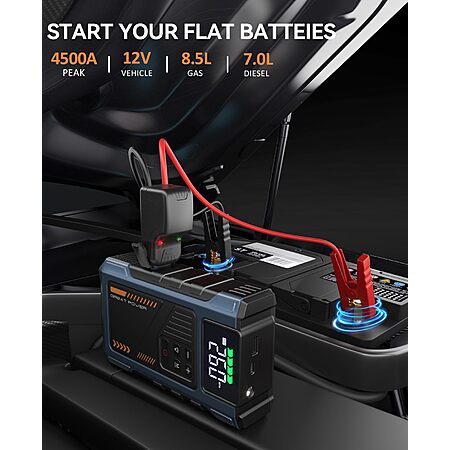- HIGH-PERFORMANCE START UP - With 4000A peak current, this car battery charger jump starteris design for 12V vehicles up to 8.5L gas/7.0L Diesel engine, and work in extreme temperatures ranging from -4℉ to 140℉ and keep ready help for you
