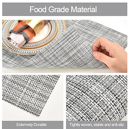 Gray Placemats Set of 4 - 17.7x11.8 Inch (Gray Black White) - $4.99