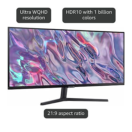 SAMSUNG 34" ViewFinity S50GC Series Ultra-WQHD Monitor, 100Hz, 5ms, HDR10, AMD FreeSync, Eye Care, Borderless Design, PIP, PBP, LS34C502GANXZA, 2023, Black $199.99