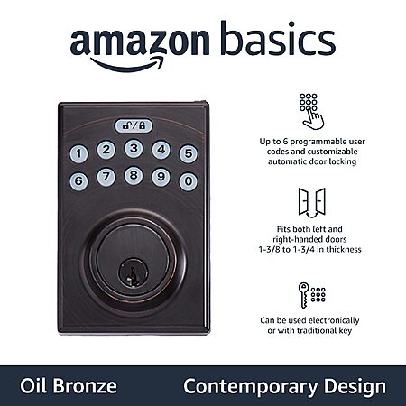 Amazon Basics Contemporary Electronic Keypad Deadbolt Doot Lock, Keyed Entry (Oil Bronze) $25.75 + Free Shipping w/ Prime or on $35+