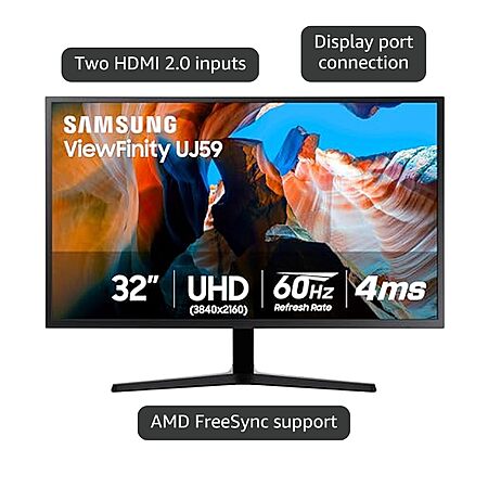 SAMSUNG 32" UJ59 Series 4K UHD (3840x2160) Computer Monitor,VA Panel, HDMI, Display Port, Eye Saver/Flicker Free Mode, FreeSync, LU32J590UQNXZA, Black $199.99