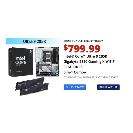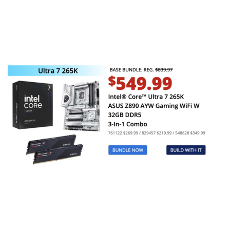 Intel Core Ultra 3-in-1 CPU + Mobo + 32 GB DDR5 RAM Bundles +
