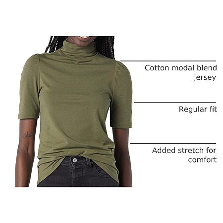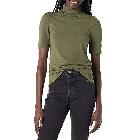 $5.96 Amazon Essentials Women's Cotton Modal Puff Sleeve Turtleneck (Olive)