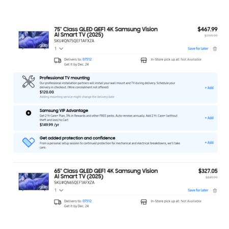 The 65" QN65QEF1AFXZA version is also marked down to $327.05 with EPP.