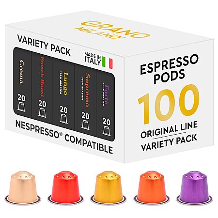 Model: New Grano Milano Variety Pack Coffee Capsules - 100 Aluminum Coffee Pods Compatible with Nespresso Original line, Medium & Dark Roast, Made in Italy