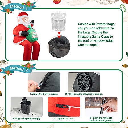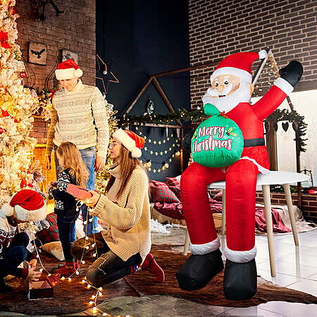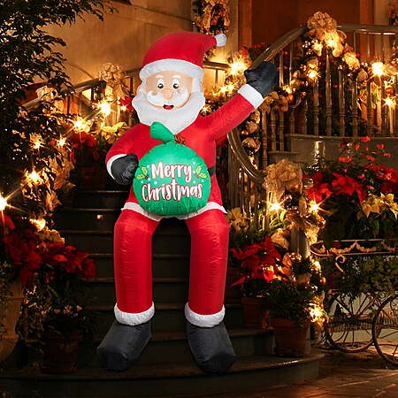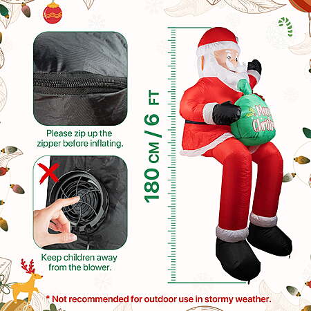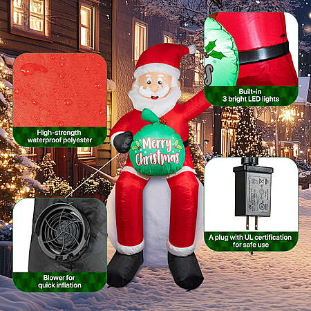 6ft Christmas Inflatable Santa Claus Outdoor Yard Decor with Gift Bag Sitting Blow Up Yard Decorations for Xmas Garden Lawn Decor