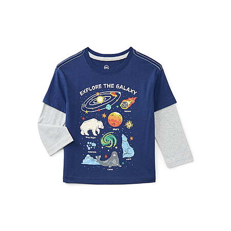Wonder Nation Cotton 'Explore the Galaxy' Graphic Tee with Long Sleeves, Sizes 12M-5T $5