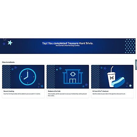 Trivia: Answer all 4 questions by January 31, 2026, at 11:59pm CT and receive a free Hot Dog Combo from the Café. Answers do not need to be correct. Limit one per membership. The Hot Dog Combo will be loaded to your membership account 1–3 weeks after completing the questions and remain valid for 60 days thereafter. Offer will be applied automatically at checkout on a register or with Scan & Go™ checkout. Offer cannot be used on SamsClub.com or with Curbside Pickup. Applies pre-tax and can be used in combination with other specified offers at Sam's Club's discretion. Sam's Club reserves the right to amend or cancel this offer, in whole or in part, or change part of the offer at any time for any or no reason, including without limitation, in the event of fraud, abuse of offer or violations of offer, as determined by the sole discretion of Sam's Club without notice to the member. Offer is only valid for direct recipients of the questions in the app and can only be redeemed once. Visit SamsClub.com/TermsAndConditions for additional details and product exclusions.