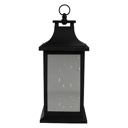 $13.66 19 in. Black LED Battery Operated Mirrored Lantern Warm White Flickering Lights