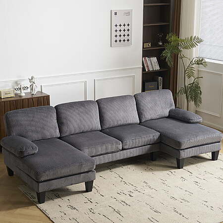 Ktaxon U-Shaped Sectional Sofa, 111" Corduroy Couch, 4 Seat Lounge Sleeper with Double Chaise for Living Room Gray $299.89