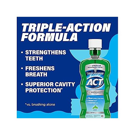 ACT Anticavity Fluoride Mouthwash with Zero Alcohol, Prevents Cavities, Freshens Breath & Stre $1.99