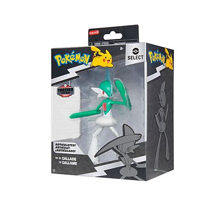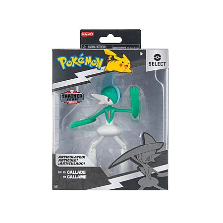 Choose Gallade, the Blade Pokémon. This 6-inch super-articulated figure is highly detailed and features over 15 points of articulation. It also includes a special posing arm stand for dynamic display. Boxed in the Select Series' signature black and silver packaging, Gallade looks like it ran right out of the Pokémon Animated Series. Team up with this Psychic- and Fighting-type and build the ultimate Pokémon Select team. Only available at Target. Officially licensed Pokémon product from Jazwares. Ages 8+