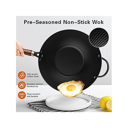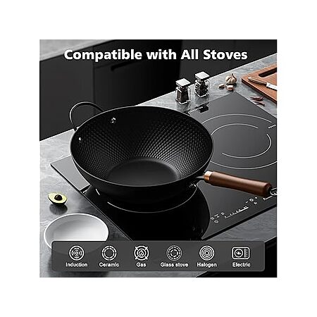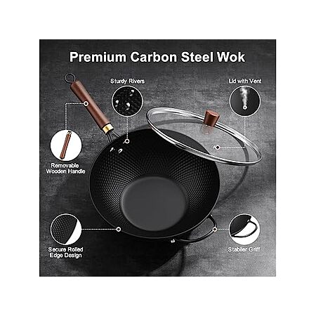13" Todlabe Carbon Steel Nonstick Wok w/ Glass Cover $24.99 + Free Shipping w/ Prime