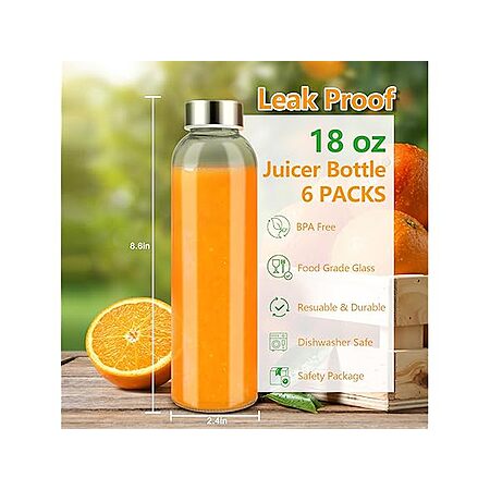 6-Pack 18-Oz Zukro Glass Juice Bottles w/ Lids, Funnel and Stick Ice Tray $15.99 + Free Shipping w/ Prime